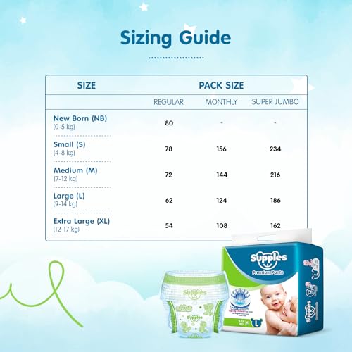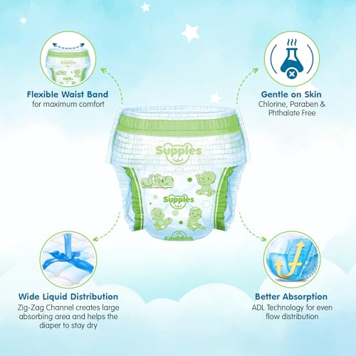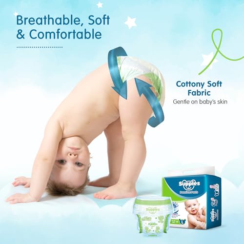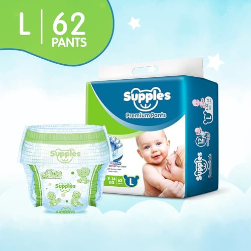 Supples Premium Diapers, Large (L), 62 Count, 9-14 Kg, 12 hrs Absorption Baby Diaper Pants