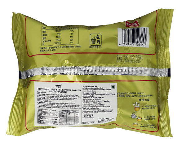 UMAI ZHENGWEN Chongqing Hot & Sour Sweet Potato Glass Noodles 110g| Chongqing Style Instant Noodles| Instant Sweet Potato Noodles| Superfood Noodles| 4 Seasonings Inside