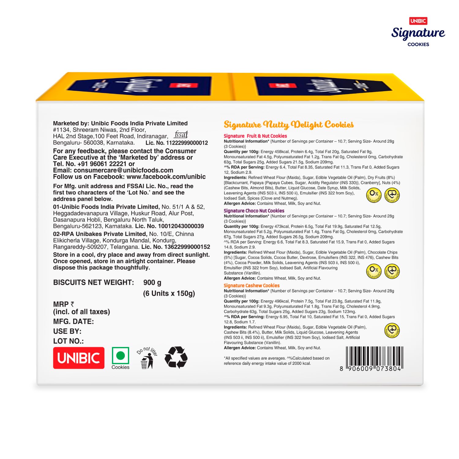 Unibic Signature Collection Cookies | Nutty Delight Combo | Cashew Nut, Choco Nut & Fruit & Nut Cookies | Family Snacks Biscuit | 900gm